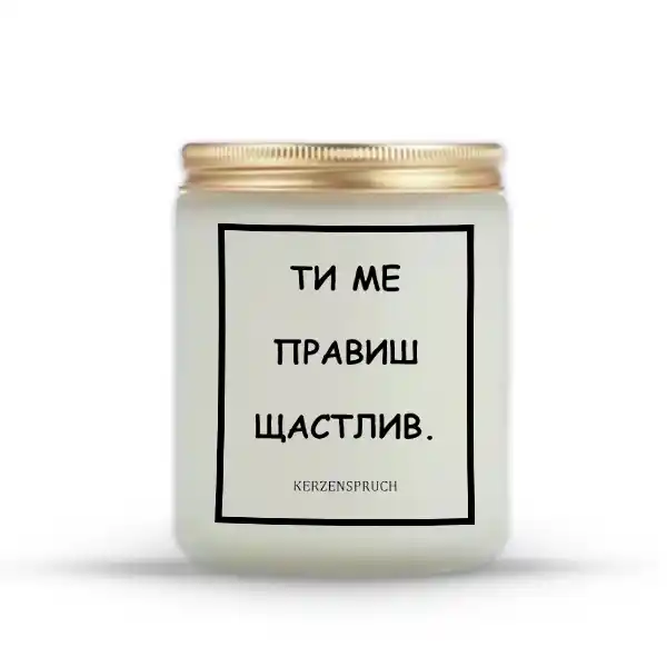 Mach ein Geschenk, das bleibt – emotional, stilvoll und persönlich. Bestelle jetzt dein Kerzen Geschenk Set Bulgarisch mit der Botschaft „ТИ МЕ ПРАВИШ ЩАСТЛИВ.“ und bringe Liebe, Duft und Sprache zusammen.