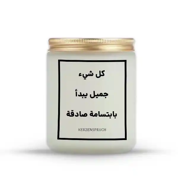 Mit der Kerzen Geschenkidee Advent wird jeder Tag im Dezember zu einem kleinen Fest. Das sanfte Flackern der Flamme bringt Ruhe und Frieden in dein Zuhause. Gleichzeitig erinnert die Botschaft „كل شيء جميل يبدأ بابتسامة صادقة.“ daran, dass ein ehrliches Lächeln der Beginn von allem Schönen ist – gerade in der hektischen Vorweihnachtszeit.