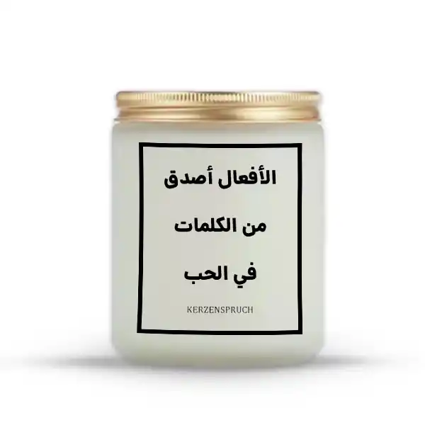 Die Kerzen Geschenkidee mit Gravur ist ein Symbol für Liebe, Aufmerksamkeit und Wertschätzung. Mit dem arabischen Spruch als Herzstück zeigst du, dass echte Liebe sich in Taten zeigt – nicht nur in Worten. Verschenke eine Kerze, die diese Botschaft auf eine wunderschöne und persönliche Weise vermittelt.