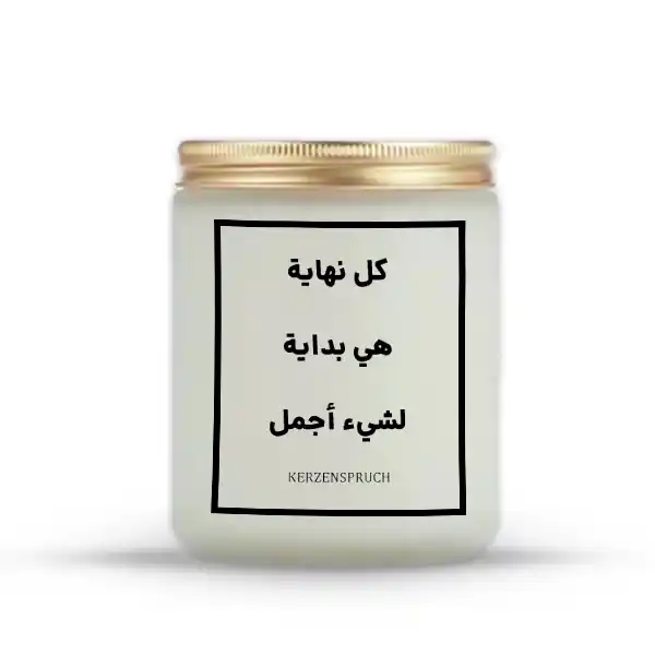Kerzen Geschenkidee mit dem tiefgründigen Spruch „كل نهاية هي بداية لشيء أجمل.“ (Jedes Ende ist der Anfang von etwas Schönerem) schafft eine ganz besondere Atmosphäre. Diese Kerze ist mehr als nur Licht – sie symbolisiert Hoffnung, Neuanfang und positive Veränderungen. Die warmen Flammen dieser Kerzen Geschenkidee erinnern dich und deine Liebsten daran, dass nach jedem Abschied immer etwas Neues und Schönes wartet. Gerade in Zeiten des Umbruchs kann diese Botschaft Kraft und Zuversicht schenken. 🕯️🌟