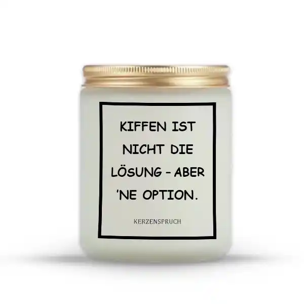 Der Spruch „Kiffen ist nicht die Lösung – aber ’ne Option.“ steht für eine entspannte Haltung zum Leben, gepaart mit einer Prise Humor. Diese Kerzen sind perfekt für alle, die den Moment genießen wollen, ohne alles zu ernst zu nehmen.