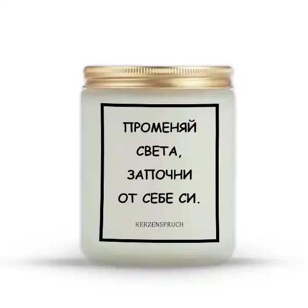 Der Spruch „ПРОМЕНЯЙ СВЕТА, ЗАПОЧНИ ОТ СЕБЕ СИ.“ ist ein Aufruf zur Selbstveränderung und zum Wachstum. Wenn du die Kerzen in bulgarischer Sprache anzündest, erinnerst du dich an die Kraft, die in dir steckt, um das Leben positiv zu beeinflussen – nicht nur für dich, sondern auch für deine Umgebung. Die Kerzen in bulgarischer Sprache bieten dir die Gelegenheit, dich immer wieder an diese wichtige Botschaft zu erinnern und bewusst Veränderungen in deinem Leben zu starten.