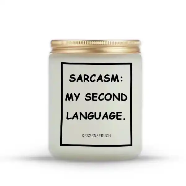 🛒 Bestelle jetzt deine Kerze mit englischen Spruchideen „SARCASM: MY SECOND LANGUAGE.“ und bringe mit charmanten Worten und warmem Licht mehr Persönlichkeit in dein Zuhause.