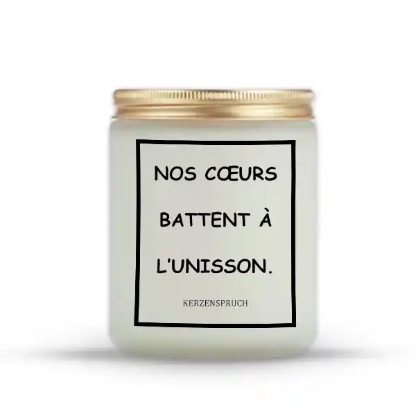 🛒 Bestelle jetzt deine Kerze mit französischen Sprüchen „NOS CŒURS BATTENT À L’UNISSON.“ und genieße französisches Flair gepaart mit warmem Kerzenschein.