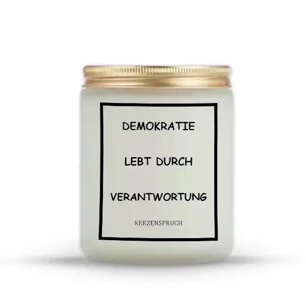 Kerzen mit Freiheitssprüchen sind mehr als Dekoration – sie tragen eine Botschaft, die wichtig ist: „DEMOKRATIE LEBT DURCH VERANTWORTUNG.“ Diese Kerzen erinnern dich täglich daran, dass Freiheit und Verantwortung untrennbar miteinander verbunden sind. Mit ihrem warmen Licht schaffen sie eine Atmosphäre, die zum Nachdenken anregt und Kraft schenkt.