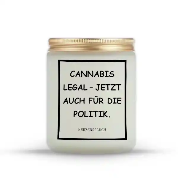 Der freche Spruch „Cannabis legal – jetzt auch für die Politik“ sorgt nicht nur für einen Lächeln, sondern auch für ein kleines Gespräch in deinem Zuhause. Es ist eine humorvolle Anspielung auf das aktuelle Thema der Legalisierung und gibt deiner Kerze eine einzigartige Persönlichkeit. 🤭💬 Es ist eine tolle Möglichkeit, deinen Gästen ein bisschen Spaß zu bieten, während du gleichzeitig eine entspannende Atmosphäre schaffst.