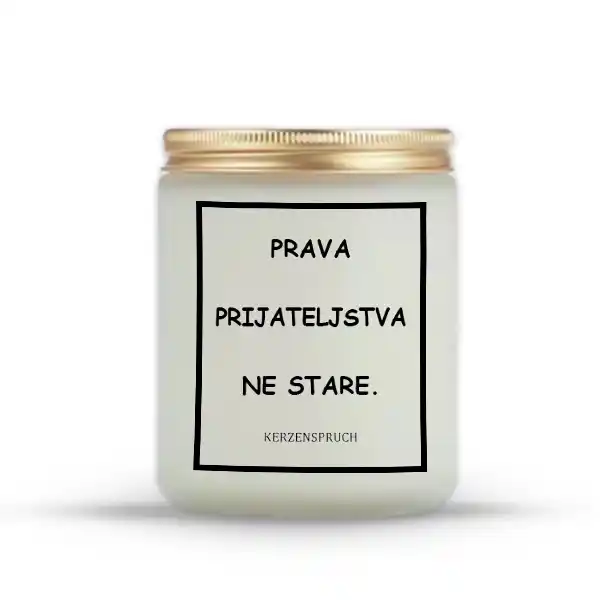 Bestelle jetzt die Kerzen mit kroatischen Sprüchen Radost mit dem motivierenden Spruch „PRAVA PRIJATELJSTVA NE STARE.“ und genieße Licht, Duft und eine inspirierende Botschaft. Mach dein Zuhause und deine Räume zu einem Ort, an dem echte Freundschaften immer strahlen!