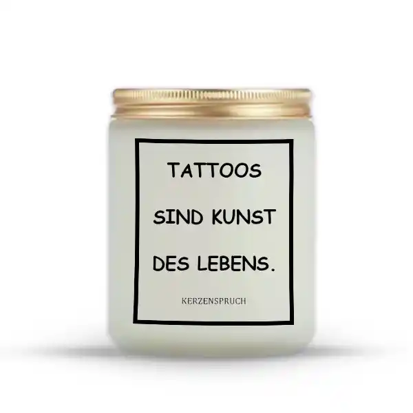 Mit den Kerzen mit kurzen Mutmachern „TATTOOS SIND KUNST DES LEBENS.“ und dem warmen Duft Honig Kuss aus Sandelholz und Honig setzt du ein Zeichen für Selbstbewusstsein und Kreativität.