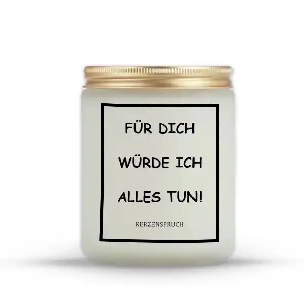 Mit einer Kerzen mit Liebe erfüllt jeden Raum kannst du Gefühle sichtbar machen. Das Zitat „FÜR DICH WÜRDE ICH ALLES TUN!“ macht aus Licht eine Botschaft, die bleibt. Hol dir dieses besondere Geschenk – für dich oder jemanden, der dir viel bedeutet.