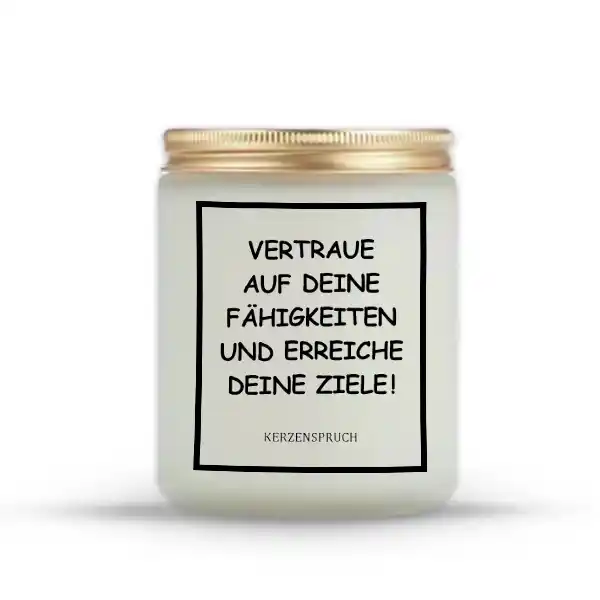 Mit usnere Kerzen schenkst du nicht nur Licht, sondern auch Hoffnung und Mut. Der Spruch „Vertraue auf deine Fähigkeiten und erreiche deine Ziele!“ wirkt als tägliche Erinnerung, Herausforderungen anzunehmen und an sich selbst zu glauben.