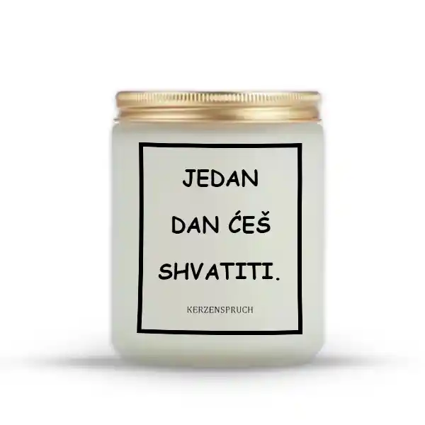 Der Spruch „JEDAN DAN ĆEŠ SHVATITI.“ vermittelt eine starke Botschaft, die gerade in herausfordernden Zeiten Kraft gibt. Sie erinnert daran, dass manche Dinge Zeit brauchen, um klar zu werden, und dass Geduld und Vertrauen wichtige Begleiter auf dem Lebensweg sind. Die Kerze wird so zu einem Symbol für Hoffnung und innere Stärke, das dich täglich begleitet und motiviert.