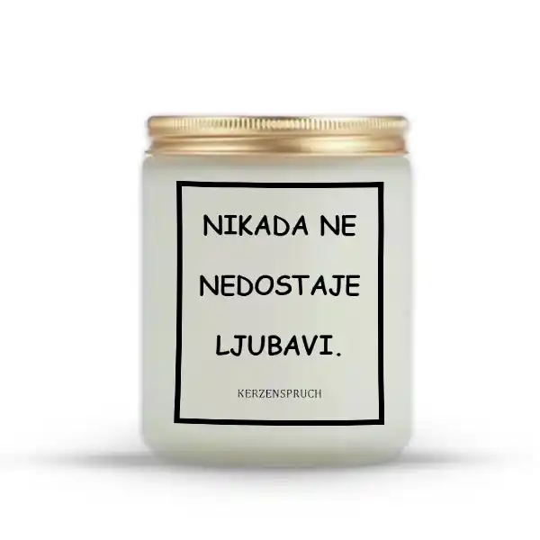 🕯️ Wenn du Kerzen mit schönen Sprüchen kaufen möchtest, bist du bei uns genau richtig. Unsere handgefertigten Kerzen tragen inspirierende Botschaften wie NIKADA NE NEDOSTAJE LJUBAVI. („Liebe fehlt niemals.“) und bringen damit nicht nur Licht, sondern auch positive Energie in jeden Raum. Diese besonderen Kerzen verbinden Handwerkskunst mit liebevollen Details und sorgen so für eine einzigartige Atmosphäre, die dein Zuhause oder jeden anderen Ort verschönert.