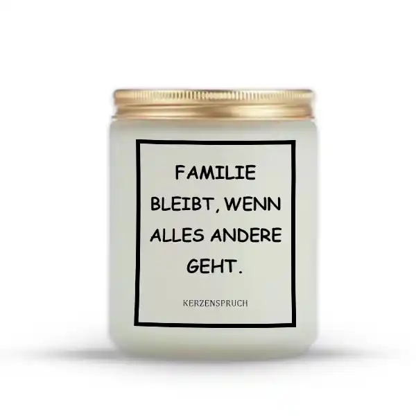 Kerzen mit Spruch kaufen bedeutet, Emotionen sichtbar zu machen. Die Kombination aus sanftem Licht und einer bedeutsamen Botschaft schafft eine besondere Atmosphäre – egal ob als Geschenk oder für dich selbst. Der Spruch „FAMILIE BLEIBT, WENN ALLES ANDERE GEHT.“ erinnert daran, was im Leben wirklich zählt: Zusammenhalt, Liebe und Geborgenheit.