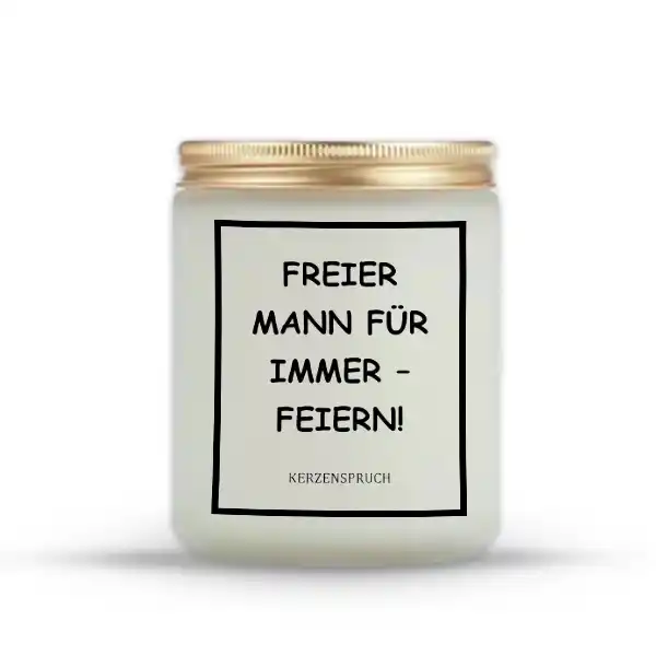 Unsere Kerzen sind mehr als nur Lichtquellen – sie sind Statements mit Humor! Der Spruch „Freier Mann für immer – Feiern!“ bringt deine wilde Seite zum Vorschein und sorgt für Gesprächsstoff bei jeder Party. Mit dem Duft Honig Kuss wird die Stimmung warm und zugleich verführerisch – genau richtig für ausgelassene Abende mit Freunden.