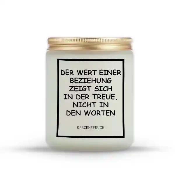 Kerzen mit Zitat Deutschland verbinden Licht und inspirierende Worte auf besondere Weise. Wenn du Kerzen mit Zitat Deutschland nutzt, schaffst du eine Atmosphäre, die nicht nur optisch, sondern auch emotional berührt. Der kraftvolle Spruch „DER WERT EINER BEZIEHUNG ZEIGT SICH IN DER TREUE, NICHT IN DEN WORTEN.“ erinnert dich daran, wie wichtig Vertrauen und Beständigkeit im Leben sind.