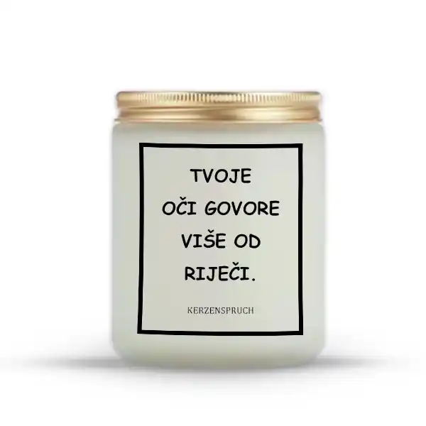 Der liebevolle Aufdruck „Tvoje oči govore više od riječi.“ verleiht deiner DIY-Kerze Tiefe und Persönlichkeit. Er erinnert daran, dass echte Verbindung oft still ist – aber trotzdem stark wirkt. Diese Botschaft macht deine selbstgemachte Kerze zu einem besonderen Geschenk oder zu einem dekorativen Begleiter für deinen Alltag.