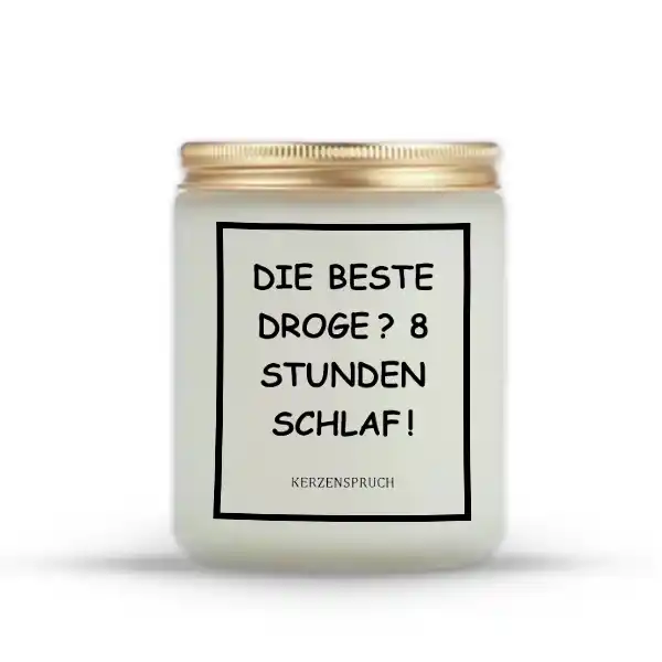 Der Spruch „DIE BESTE DROGE? 8 STUNDEN SCHLAF!“ ist nicht nur eine lustige Erinnerung, sondern auch eine sanfte Aufforderung, achtsam mit sich selbst umzugehen. Wenn du diese Kerze anzündest, kannst du tief durchatmen, entspannen und die beruhigende Atmosphäre genießen. Der Duft trägt dazu bei, deinen Raum in eine Oase der Ruhe zu verwandeln, in der du dich völlig entspannen kannst. 🌿💭