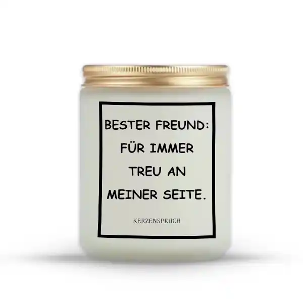 Kerzen zum Schenken sind eine wundervolle Möglichkeit, besonderen Menschen Wertschätzung und Nähe zu zeigen – auf eine ruhige, warme und zugleich bedeutungsvolle Weise. Der emotionale Spruch „BESTER FREUND: FÜR IMMER TREU AN MEINER SEITE.“ verleiht der Kerze eine persönliche Note und macht sie zu einem Geschenk, das von Herzen kommt.