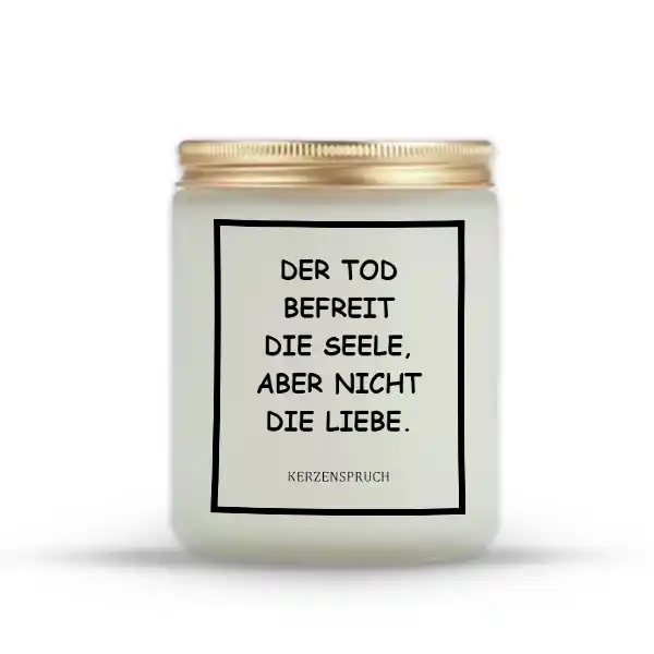Diese besondere Kerze wurde für genau solche Augenblicke geschaffen. Mit einem schlichten, ehrlichen Spruch, der Trost spenden kann, ohne leer zu klingen: „DER TOD BEFREIT DIE SEELE, ABER NICHT DIE LIEBE.“ – eine klare Botschaft, die Gefühle ausdrückt, ohne zu übertreiben. Sie erinnert daran, dass echte Verbundenheit nicht mit dem letzten Atemzug endet, sondern weiterlebt – in Gedanken, in Erinnerungen, im Herzen.