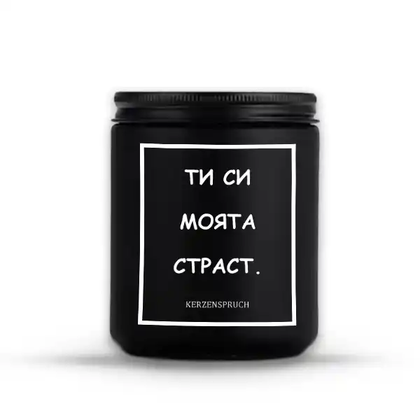 🕯️ Kerzenspruch mit bulgarische Texte verbindet tiefe Emotionen mit kultureller Individualität. Die Kerze „ТИ СИ МОЯТА СТРАСТ.“ – auf Deutsch: „Du bist meine Leidenschaft.“ – ist ein sinnlicher Ausdruck von Nähe, Begierde und Liebe, verpackt in einer stilvollen, handlichen Duftkerze.