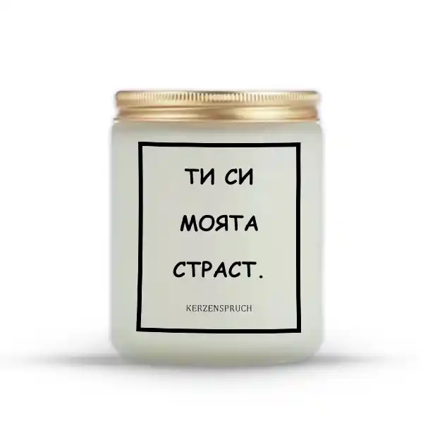 🛒 Jetzt Kerze mit bulgarischem Spruch „ТИ СИ МОЯТА СТРАСТ.“ bestellen – für echte Emotionen, einen Hauch Exotik und ein Licht, das Herzen verbindet.