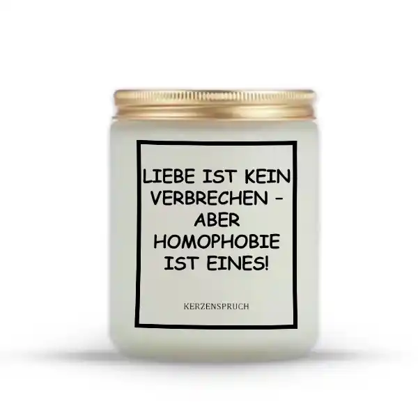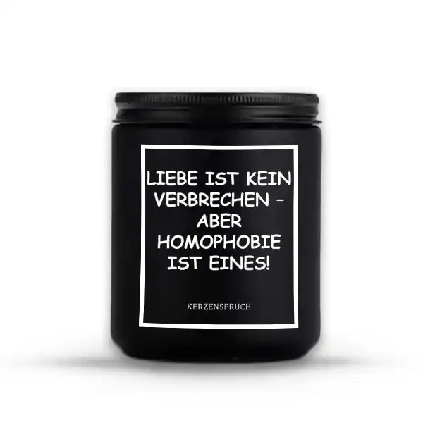 Holt dir jetzt deine „LGBTQ Kerzen Geschenk“ und feiere die Vielfalt und Liebe in allen Formen. Der Spruch „LIEBE IST KEIN VERBRECHEN – ABER HOMOPHOBIE IST EINES!“ lässt dich nicht nur deinen Raum verschönern, sondern trägt auch die Botschaft von Akzeptanz und Freiheit. Bestelle jetzt und sei Teil der Bewegung für mehr Liebe und Gleichberechtigung!