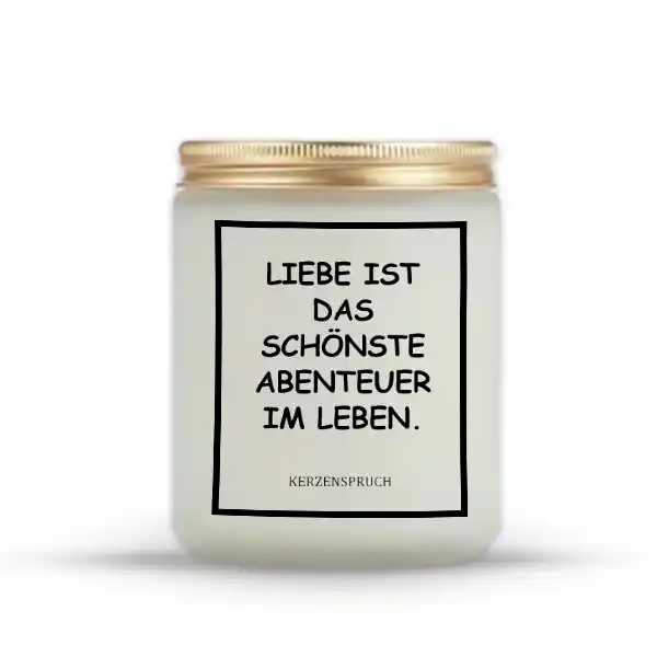 Mit der Kerze schenkst du nicht nur Licht, sondern ein Gefühl. Das Zitat „LIEBE IST DAS SCHÖNSTE ABENTEUER IM LEBEN.“ macht diese Kerze zu einem Ausdruck von tiefen Emotionen und gemeinsamen Erlebnissen.
