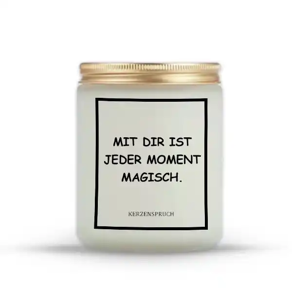 Die Mit dir Duftkerze steht für Nähe, Wärme und die kleinen Augenblicke, die im Herzen bleiben. Mit dem liebevollen Spruch „MIT DIR IST JEDER MOMENT MAGISCH.“ bringt sie das auf den Punkt, was oft schwer in Worte zu fassen ist: Wie besonders es ist, Zeit mit einem Menschen zu teilen, den man liebt.