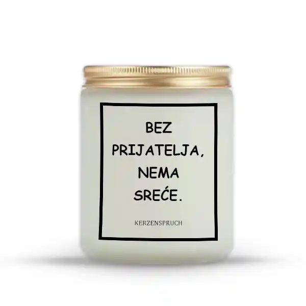 Die Duftkerze BEZ PRIJATELJA, NEMA SREĆE. bringt einen blumigen, leicht pudrigen Duft in Ihre Wohnräume – dezent, warm und sehr natürlich. Diese aromatische Kerze eignet sich ideal für den Wohnbereich, das Schlafzimmer oder auch als sanfte Beduftung im Homeoffice. Sie schafft Ruhe und wirkt gleichzeitig belebend. Die natürliche Duftkomposition ist frei von künstlichen Zusatzstoffen und basiert auf ätherischen Ölen, die in einem ausgewogenen Verhältnis mit dem Wachs vermischt werden.