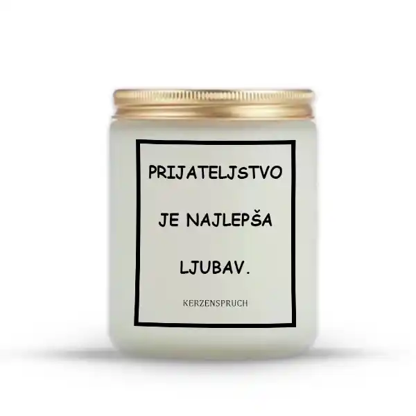 Die Kerze PRIJATELJSTVO JE NAJLEPŠA LJUBAV. erinnert Dich täglich daran, wie wertvoll Freundschaft und Liebe sind – ein echter Blickfang und eine bedeutungsvolle Dekoration.
