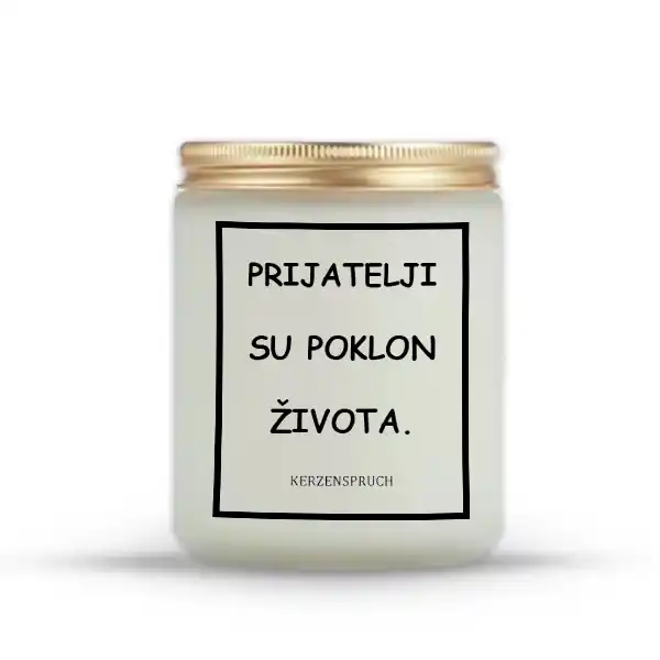 „PRIJATELJI SU POKLON ŽIVOTA.“ – „Freunde sind das Geschenk des Lebens.“ Diese Kerze aus unserer Montenegrinische Kerzen limitierte Edition bringt genau diese Botschaft mit sich: Dankbarkeit, Verbundenheit und emotionale Wärme.