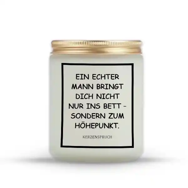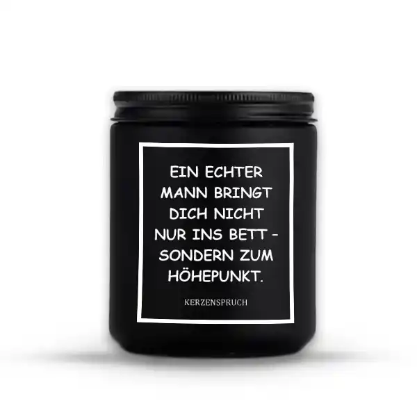 Mit dem frechen Spruch „EIN ECHTER MANN BRINGT DICH NICHT NUR INS BETT – SONDERN ZUM HÖHEPUNKT.“ sorgt diese Kerze für ein Lächeln und vielleicht auch für ein leicht errötetes Gesicht. Sie ist das perfekte Accessoire für einen romantischen Abend oder als humorvolles Geschenk für das Lieblingspärchen.