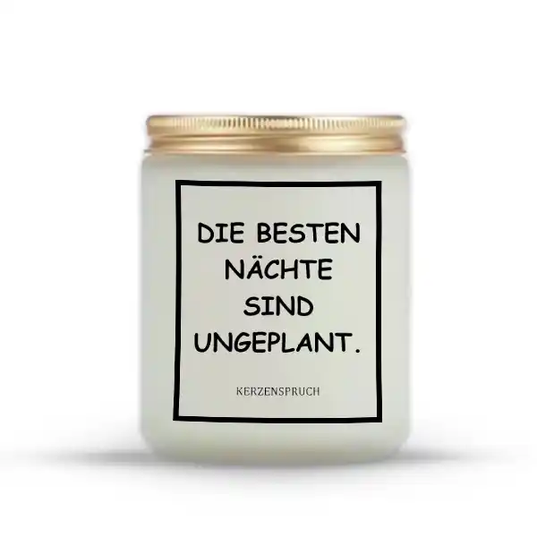 Bunte Party Kerzen mit Zitat DIE BESTEN NÄCHTE SIND UNGEPLANT. und Duft von Sandelholz & Honig für lebendige, spontane Feiern. 🍯🎉