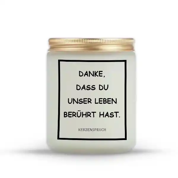 Der Satz DANKE, DASS DU UNSER LEBEN BERÜHRT HAST. bringt in wenigen Worten zum Ausdruck, wie tief die Verbindung und der Dank für das gemeinsame Leben sind. Diese Worte verleihen der Kerze eine besondere Bedeutung, die berührt und tröstet.
