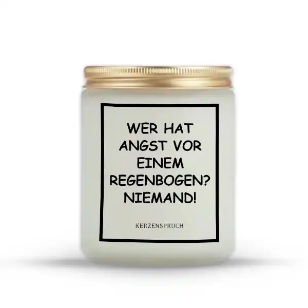 Pride Sojawachs Kerzen sind mehr als ein Wohnaccessoire – sie sind ein leuchtendes Symbol für Offenheit, Vielfalt und Selbstakzeptanz. Die Kerze mit dem Spruch „WER HAT ANGST VOR EINEM REGENBOGEN? NIEMAND!“ bringt genau diese Botschaft humorvoll und zugleich mutig auf den Punkt.