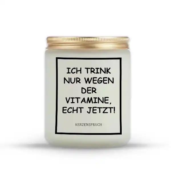 Das elegante Glas mit dem witzigen Spruch ICH TRINK NUR WEGEN DER VITAMINE, ECHT JETZT! macht die Kerze zum Hingucker auf jedem Tisch oder Regal. So verbindet sich Funktionalität mit einer Portion Humor und Stil.