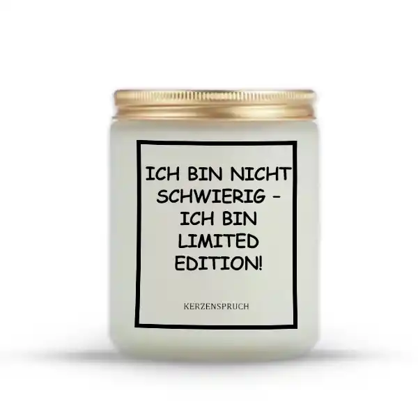 Ob für dich selbst oder für jemand anderen, der seine Einzigartigkeit feiern möchte – die Queer Kerzen bestellen sind ein perfektes Geschenk. Sie bringen nicht nur Licht und Wärme in den Raum, sondern auch eine Botschaft der Selbstakzeptanz und Liebe. Der Spruch „ICH BIN NICHT SCHWIERIG – ICH BIN LIMITED EDITION!“ ist eine Erinnerung daran, dass du in einer Welt, die oft Normen und Erwartungen auferlegt, die Freiheit und das Recht hast, du selbst zu sein. Diese Kerzen sind für all jene, die stolz auf ihre Geschichte sind und die es wagen, sich in ihrer vollen Authentizität zu zeigen.