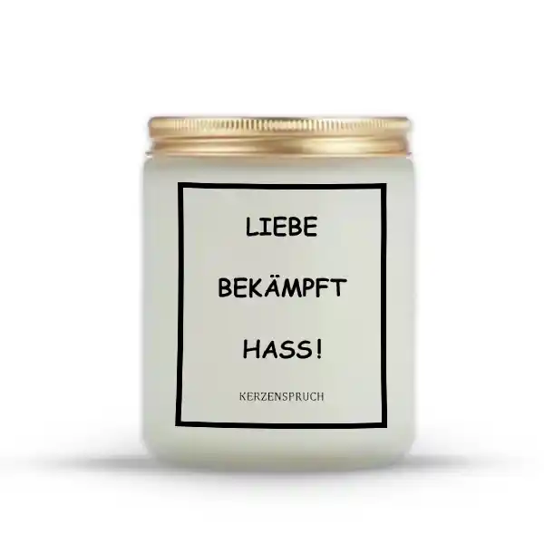 Das schlichte, aber ausdrucksstarke Design passt zu jedem Raum und macht die Kerzen zu einem stilvollen Highlight. Die Botschaft „LIEBE BEKÄMPFT HASS!“ steht dabei im Mittelpunkt und erinnert jeden Tag daran, wie wichtig Zusammenhalt und gegenseitiger Respekt sind.