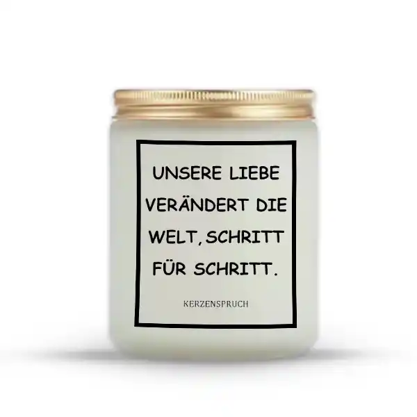 Der Spruch „UNSERE LIEBE VERÄNDERT DIE WELT, SCHRITT FÜR SCHRITT.“ könnte nicht passender sein für diese „Regenbogen Duftkerzen mit Botschaft“. Liebe ist eine der stärksten Kräfte im Universum, und durch kleine Taten der Liebe und Fürsorge können wir gemeinsam die Welt zu einem besseren Ort machen. Diese Kerze erinnert dich daran, dass du einen Unterschied machen kannst – sei es in deiner Beziehung, deinem Freundeskreis oder in der Welt um dich herum.
