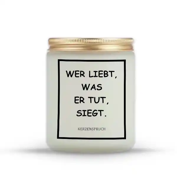 Romantische Kerzen Sprüchen bestellen bedeutet, deinem Zuhause oder deinem besonderen Menschen ein Stück Wärme und Zuneigung zu schenken. Die Kerzen tragen den inspirierenden Spruch „Wer liebt, was er tut, siegt.“ und schaffen so eine Atmosphäre voller Leidenschaft und Herzlichkeit.