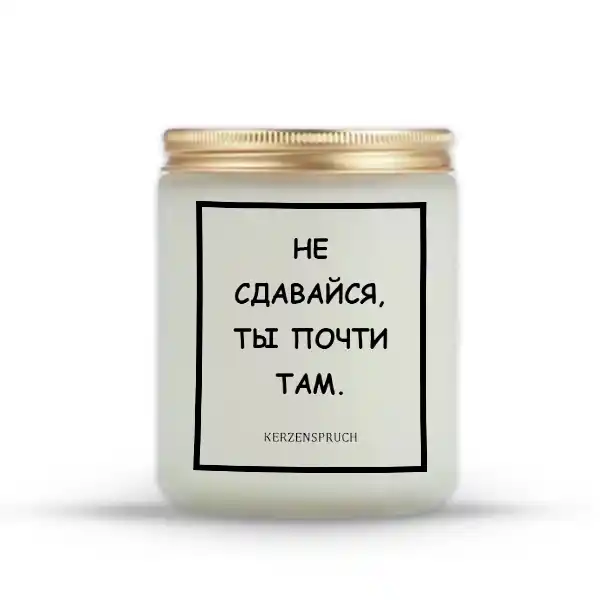 Diese besondere Kerze trägt den kraftvollen Titel „НЕ СДАВАЙСЯ, ТЫ ПОЧТИ ТАМ.“ – „Gib nicht auf, du bist fast da.“ Sie steht für Durchhaltevermögen, Stärke und das Vertrauen, den eigenen Weg weiterzugehen. Wenn du russische Kerzen groß suchst, findest du hier ein Licht, das nicht nur duftet, sondern motiviert.