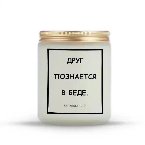 🕯️ Wenn du nach russische Kerzen Luxus suchst, findest du hier ein Produkt, das höchsten Ansprüchen gerecht wird. Die Kerze mit dem russischen Spruch „ДРУГ ПОЗНАЕТСЯ В БЕДЕ.“ – „Ein Freund erkennt man in der Not.“ – verbindet edles Design mit einer kraftvollen Botschaft, die dich täglich begleitet.