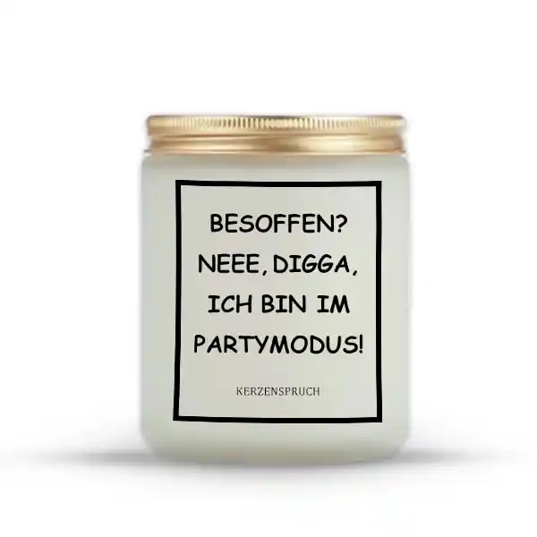 Die Kerze kommt in einem stylischen Glas mit klarer Botschaft. Der Spruch „Besoffen? Neeee, Digga, ich bin im Partymodus!“ ist nicht nur ein Hingucker, sondern auch Gesprächsthema auf jeder Feier. Ideal für Wohnzimmer, WG-Küche oder den Balkon – diese Duftkerze steht für Selbstironie und Spaß am Leben.