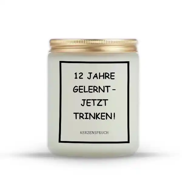 Mit der Sprüchekerze „12 JAHRE GELERNT – JETZT TRINKEN!“ wird jede Schulabschlussfeier zum Highlight. Sie verbindet Spaß, Style und Sinnlichkeit und ist ein tolles Andenken an einen wichtigen Lebensabschnitt. Bestelle jetzt deine Kerze und mache den Abschluss unvergesslich!