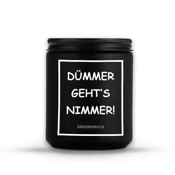 Darüber hinaus sind schwarze Kerzen auch ein außergewöhnliches Geschenk, das Persönlichkeit und Humor verbindet. Mit dem Schriftzug „DÜMMER GEHT’S NIMMER!“ sorgst du garantiert für Gesprächsstoff und bringst gleichzeitig ein Lächeln auf die Gesichter.