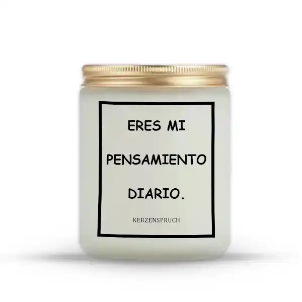 Bestelle jetzt deine spanische Kerzen Versand mit Zeitfenster mit dem bedeutungsvollen Spruch „ERES MI PENSAMIENTO DIARIO.“ und genieße eine pünktliche Lieferung sowie das warme Licht dieser besonderen Kerze. Sorge für eine Atmosphäre voller Liebe, Ruhe und Verlässlichkeit!