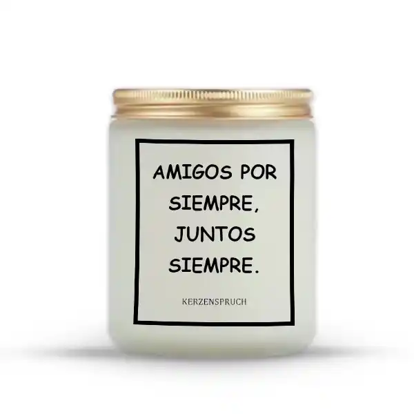 Mit der Kerze AMIGOS POR SIEMPRE, JUNTOS SIEMPRE. verschenkst Du mehr als ein Licht – Du teilst eine emotionale Aussage über Freundschaft und Nähe. Ideal als Geschenk oder als persönliches Statement im eigenen Raum.