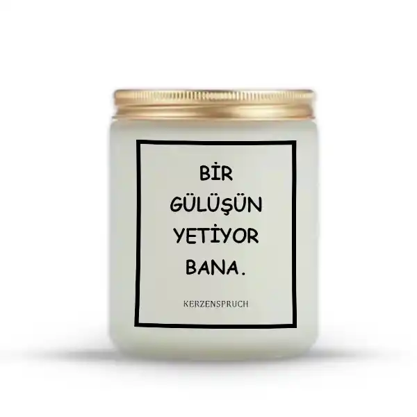 🕯️ Die Türkische Kerzen aromatisch vereinen Emotion, Kultur und Duft auf eindrucksvolle Weise. Mit dem romantischen Zitat „BİR GÜLÜŞÜN YETİYOR BANA.“ – zu Deutsch: „Ein Lächeln von dir reicht mir“ – bringt diese Kerze nicht nur Licht, sondern auch Wärme und Nähe in jeden Raum. Sie ist ein Symbol für kleine Momente, die Großes bewirken.
