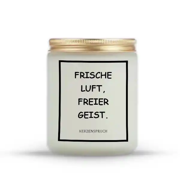 Der aufgedruckte Spruch „FRISCHE LUFT, FREIER GEIST.“ macht jede Kerze zu einem kleinen Statement für Freiheit, Ruhe und Naturverbundenheit.